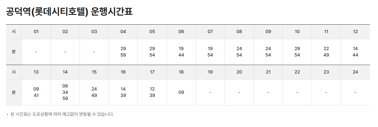 - 운행 구간: 공덕역 → 마포역(서울가든호텔) → 인천공항 제1터미널 → 제2터미널