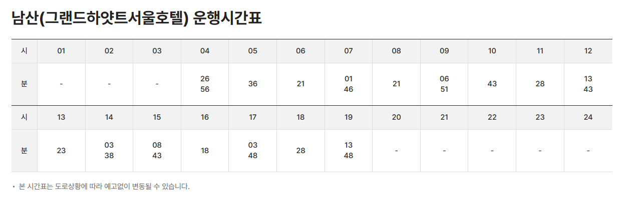 ※ 실제 운행 시간은 도로 상황에 따라 변경될 수 있습니다.