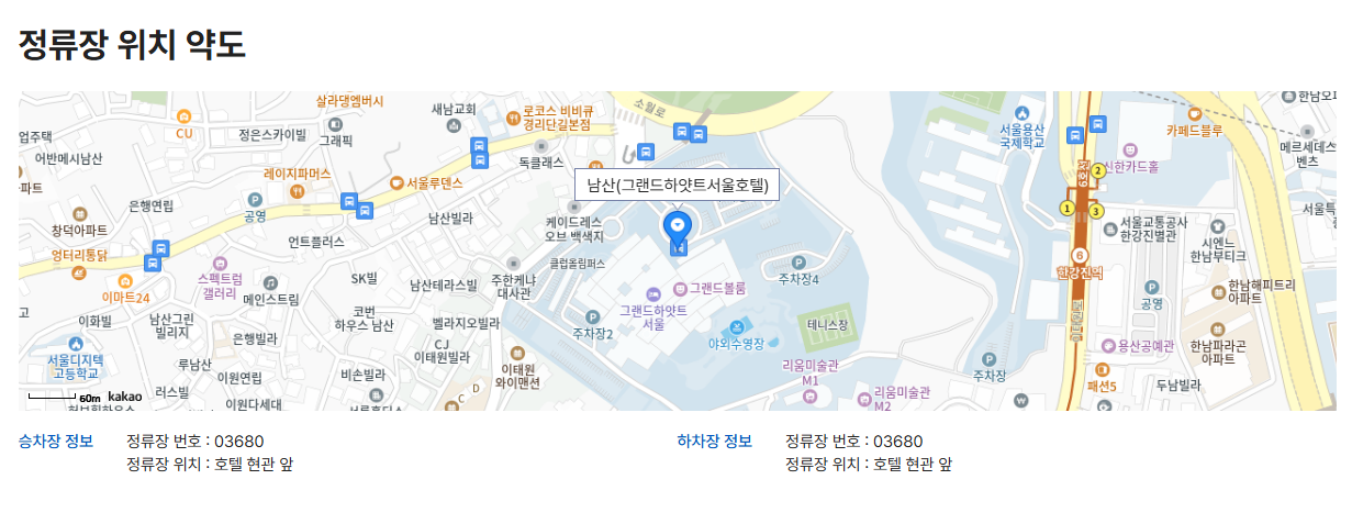 - 정류장 명칭: 그랜드하얏트서울 호텔 정문 앞