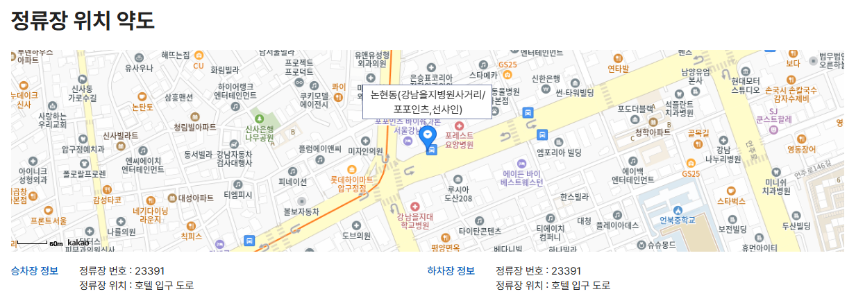 - 정류장 명칭: 논현동(강남을지병원사거리/포포인츠, 선샤인)