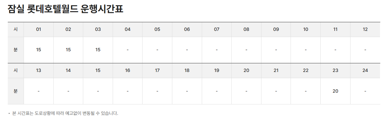 - 정류장 명칭: 잠실 롯데월드호텔 (샤롯데극장 옆)